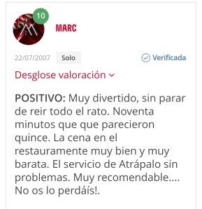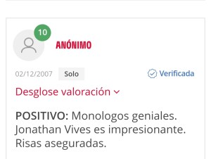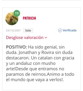 Por fin te encontré! Tuve la suerte de poder disfrutar de un monólogo tuyo en Palafrugell hace tiempo ya… Me encantó. Espero vaya todo bien.